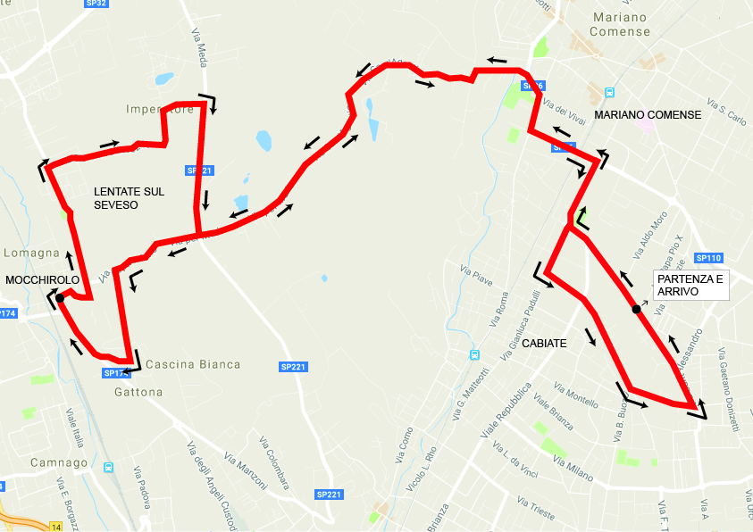 Percorso ondulato di 19 km da ripetere 3 volte tra i comuni di Mariano C.se e Lentate sul Seveso